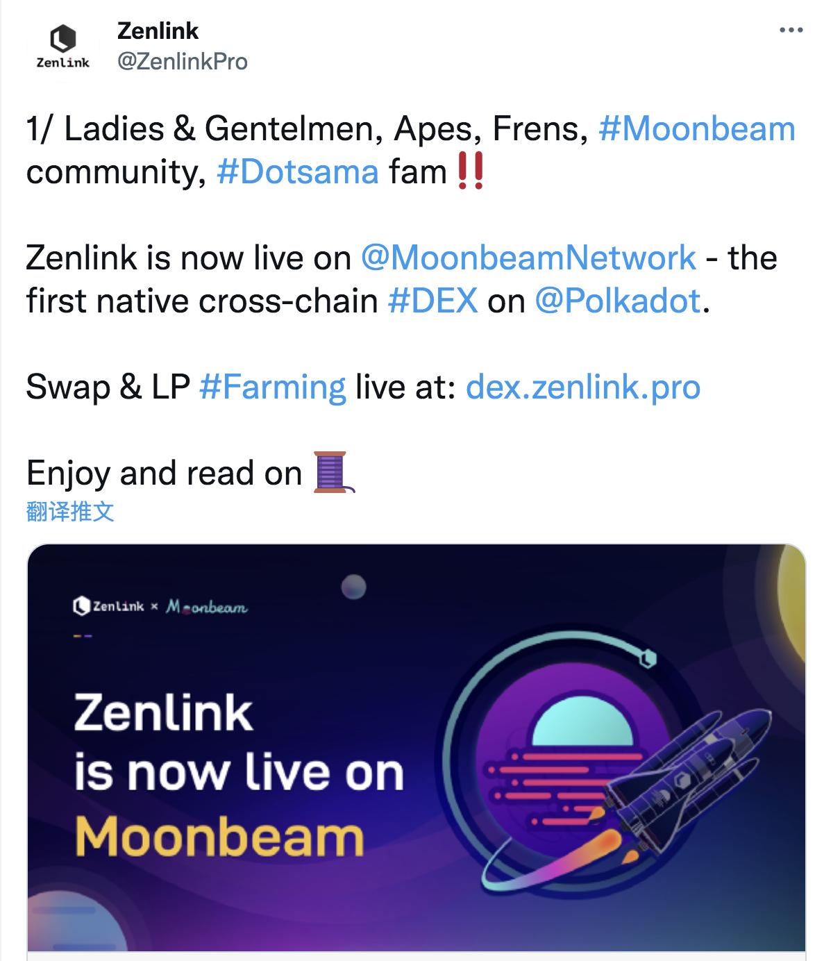 链捕手消息,根据官方消息,波卡跨链 DEX 协议 Zenlink 现已正式上线 Moonbeam 网络,实现 Web3 应用同时部署到 Kusama 和 Polkadot 网络。作为 Moonbeam 网络上第一个原生跨链 DEX,Zenlink 宣布针对Moonbeam 原生代币 GLMR 和从其他区块链网络跨链到 Moonbeam 网络的资产推出长期流动性激励计划。
