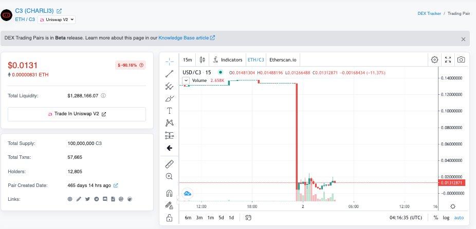 链捕手消息,派盾(PeckShield)监测显示,Charli3 代币价格 C3 已经下跌 91%。目前 Charli3 正在与 Iagon、GeroWallet、CardStarter 等其他受影响的团队合作,并试图解决问题。
