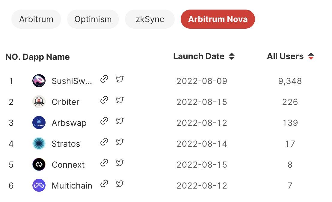 链捕手消息,Orbiter Finance 宣布其数据平台“Orbiter L2 Data”现已支持Arbitrum Nova,用户可以查看该区块链所有DAPP的名称、发布日期以及交互用户数量。这也是第一个支持Arbitrum Nova数据的数据平台。