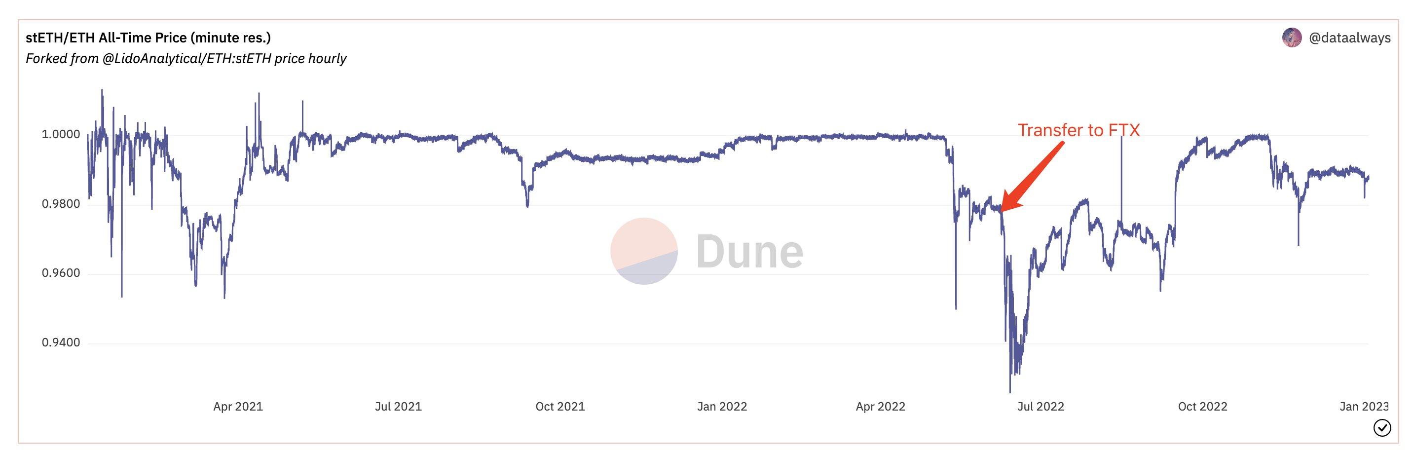 Lookonchain:链上数据显示 stETH/ETH 脱钩或与 FTX 有关