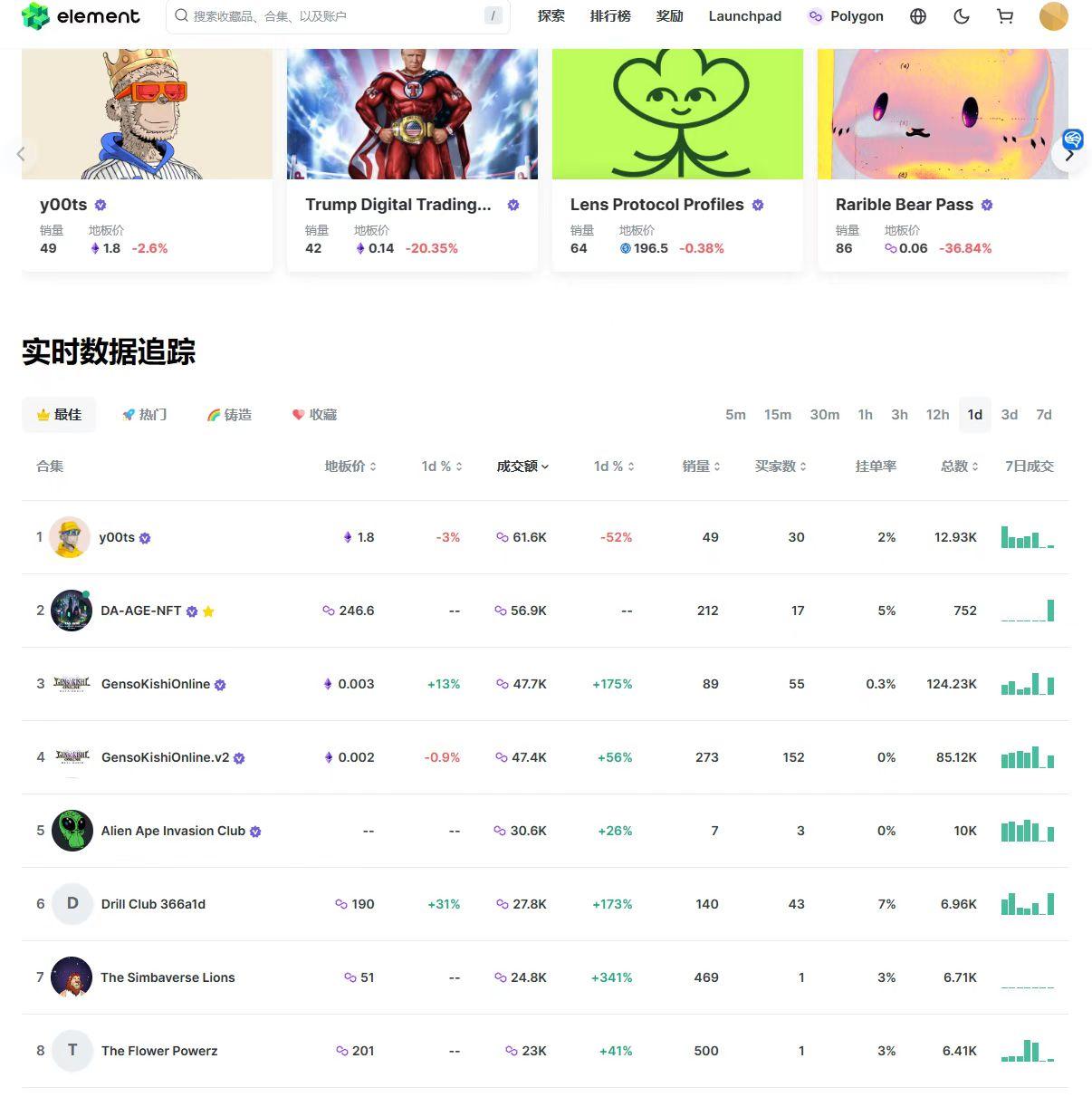 DA AGE NFT 白名单 24 小时交易量冲顶 Element Market 第二位