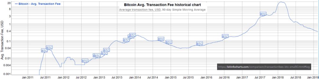 如果人们会付高额比特币交易费用的理论被证伪,那按照美金来计价,将来的交易费也不会比今天的交易费高到哪里去。