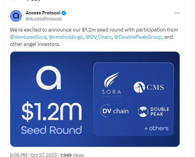 内容货币化协议 Access Protocol 完成 120 万美元种子轮融资,Sora Ventures 等参投