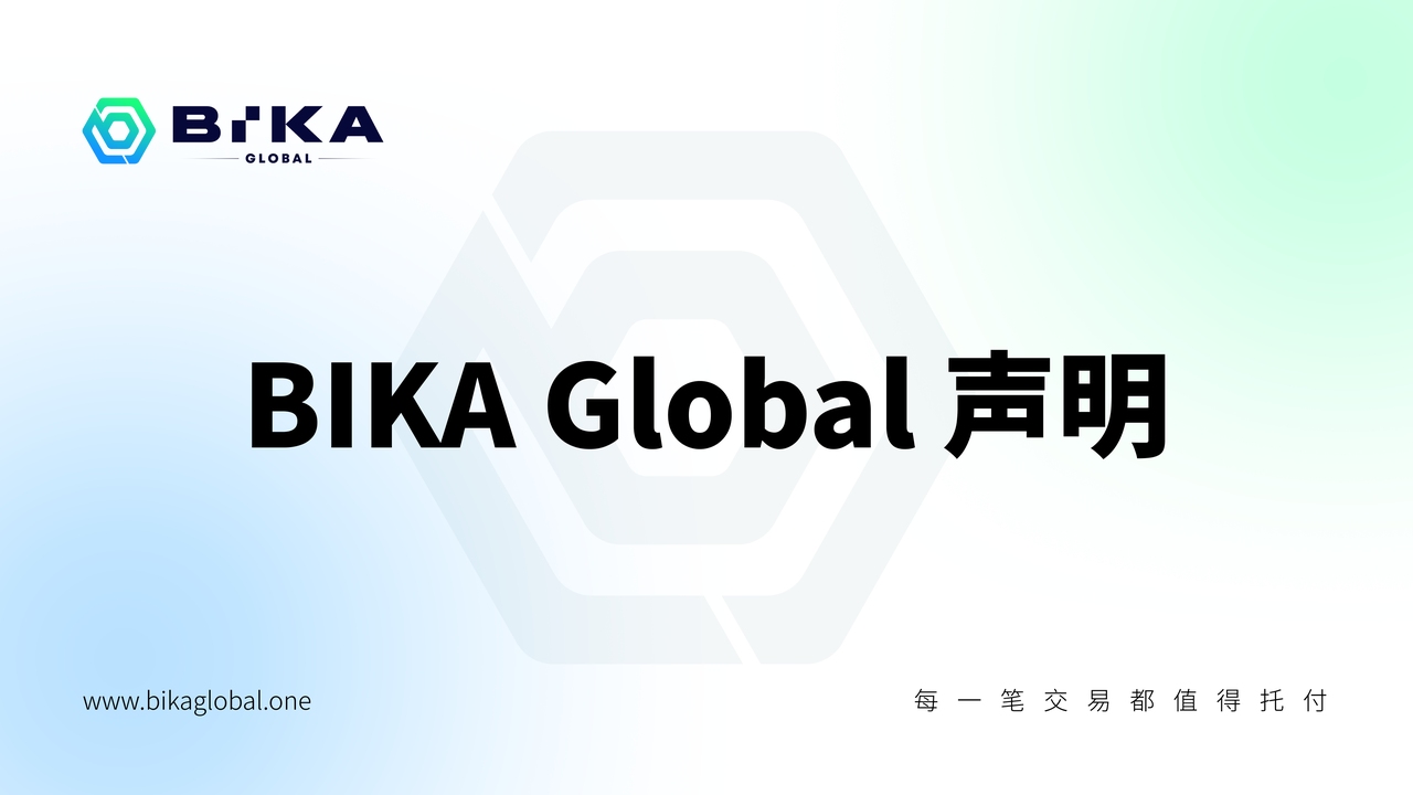 公告表示:成立 5 年以来 BIKA 一直保持稳定合规运营,并于近期完成 BIKA 及 BIKA Global 品牌全球化升级与融合,且开展了更广泛的业内合作。目前 BIKA 平台经营与服务一切正常,充值提现通道顺畅。请用户不要相信谣言,切勿上当受骗。