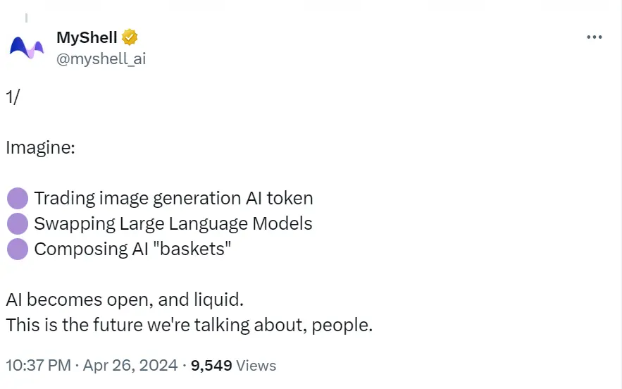 此前报道消息,4 月 19 日,去中心化 AI 内容平台 MyShell 宣布推出全球首个 AI 消费者 Layer2 网络,旨在连接用户、创作者和开源 AI 模型研究人员。MyShell Layer2 测试网将于下周上线,由 AltLayer 提供安全部署。