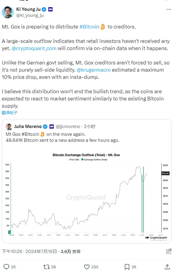 ChainCatcher 消息,CryptoQuant 创始人 Ki Young Ju 发文表示:“Mt.Gox 正准备向债权人分发比特币。大规模资金流出表明散户投资者尚未收到资金。当发生时,CryptoQuant 将通过链上数据进行确认。与德国政府出售不同,Mt.Gox 的债权人并没有被迫出售,因此这不是纯粹的卖方流动性。加密分析师 Alex Krüger 估计这最多致比特币价格下跌 10%,即使发生即时性抛售。我相信这种分配不会结束看涨趋势,因为这些比特币预计会像现有供应一样对市场情绪做出反应。”