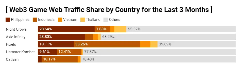 Tiger Research:大型 Web3 游戏的网络流量中,东南亚用户仍占很大比例