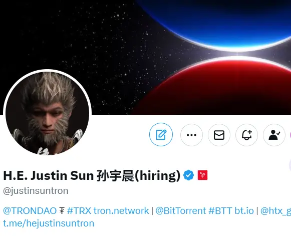 ChainCatcher 消息,据 X 平台页面显示,孙宇晨将 X 账户头像更换为黑神话悟空中的“悟空”。