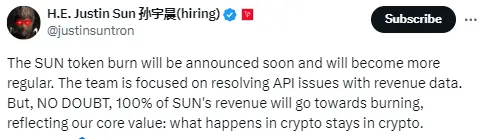 “但毫无疑问,SUN 的 100% 收入将用于销毁,这反映了我们的核心价值:加密领域的一切都应留在加密领域。”