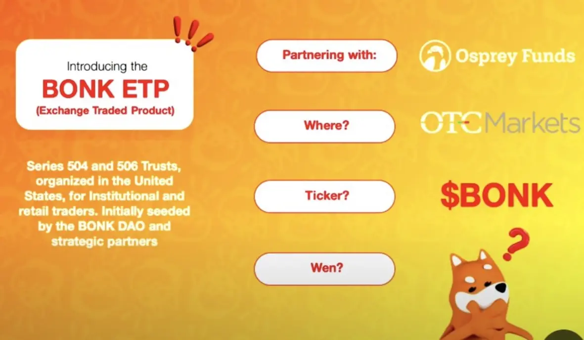 Meme 币 BONK 宣布将在美国推出 BONK ETP