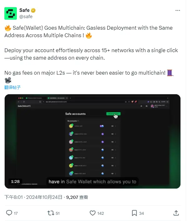 ChainCatcher 消息,Safe 钱包宣布推出多链功能,用户可以一键式在 15 个以上的网络中部署帐户。新功能主要特点包括在网络上使用相同地址创建,一次部署多链或稍后添加网络,以及管理多个帐户的新侧边栏界面。