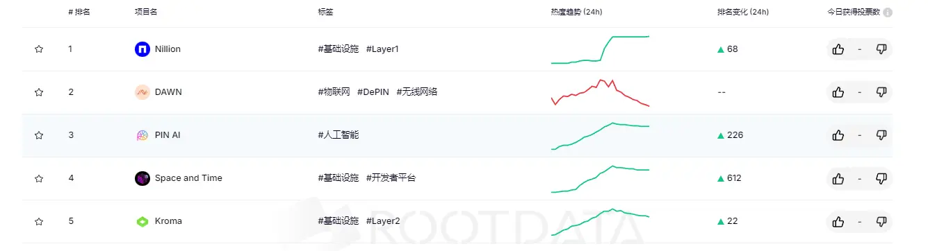 RootData 热度指数排名:Nillion 名列第一 , NIM Network 排名提升最大