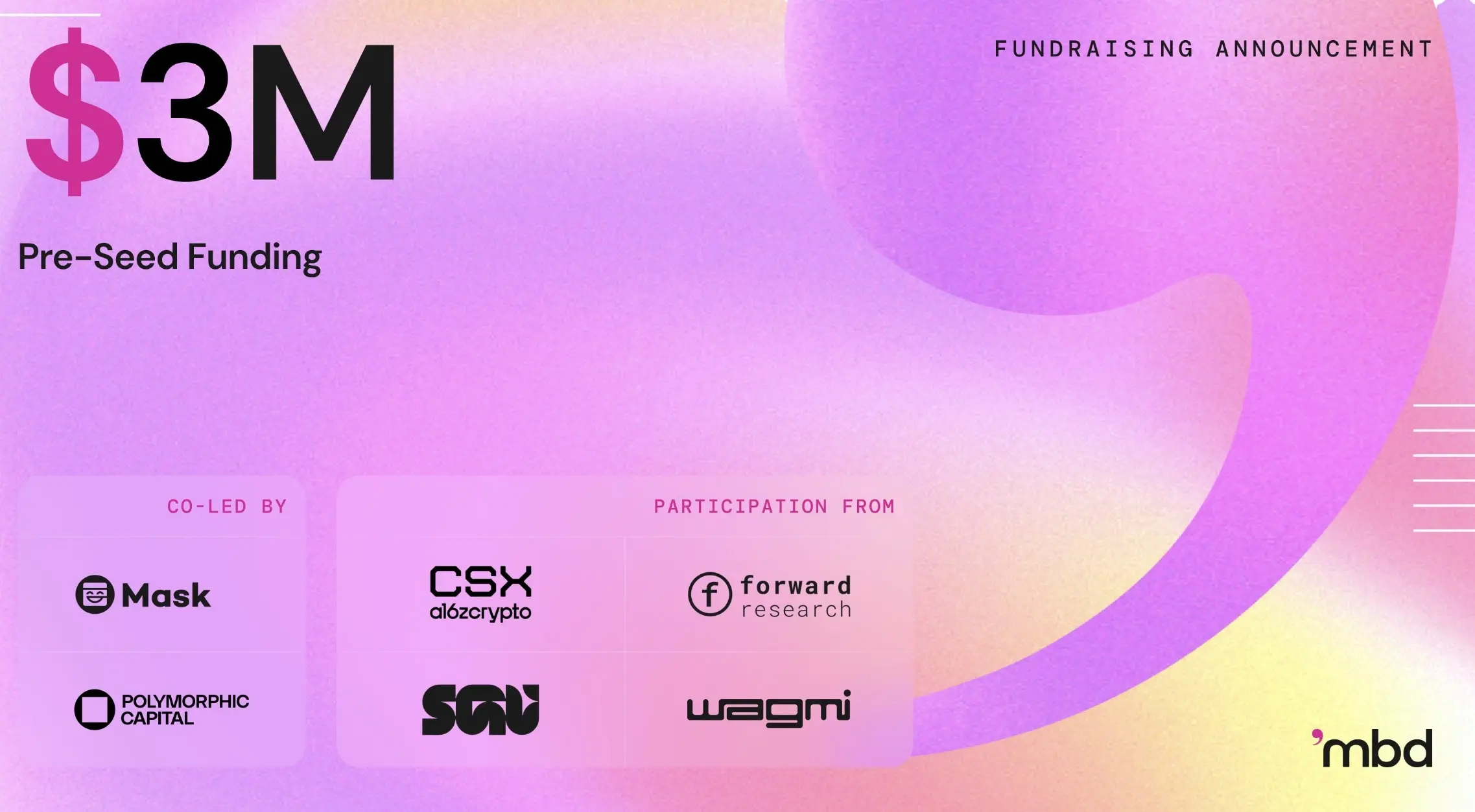 Web3 AI 内容推荐系统 ❜mbd 完成 300 万美元 Pre-seed 轮融资,Mask Network 和 Polymorphic Capital 领投