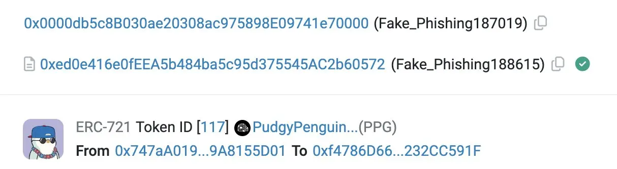 数据:某用户数分钟前因签署网络钓鱼交易损失 1 枚 Pudgy Penguin