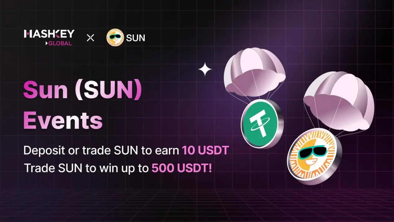 此外,为庆祝 SUN 的上线,Hashkey Global 特别推出限时奖励活动,用户只需充值或交易 SUN,即可有机会赢取 USDT 奖励。