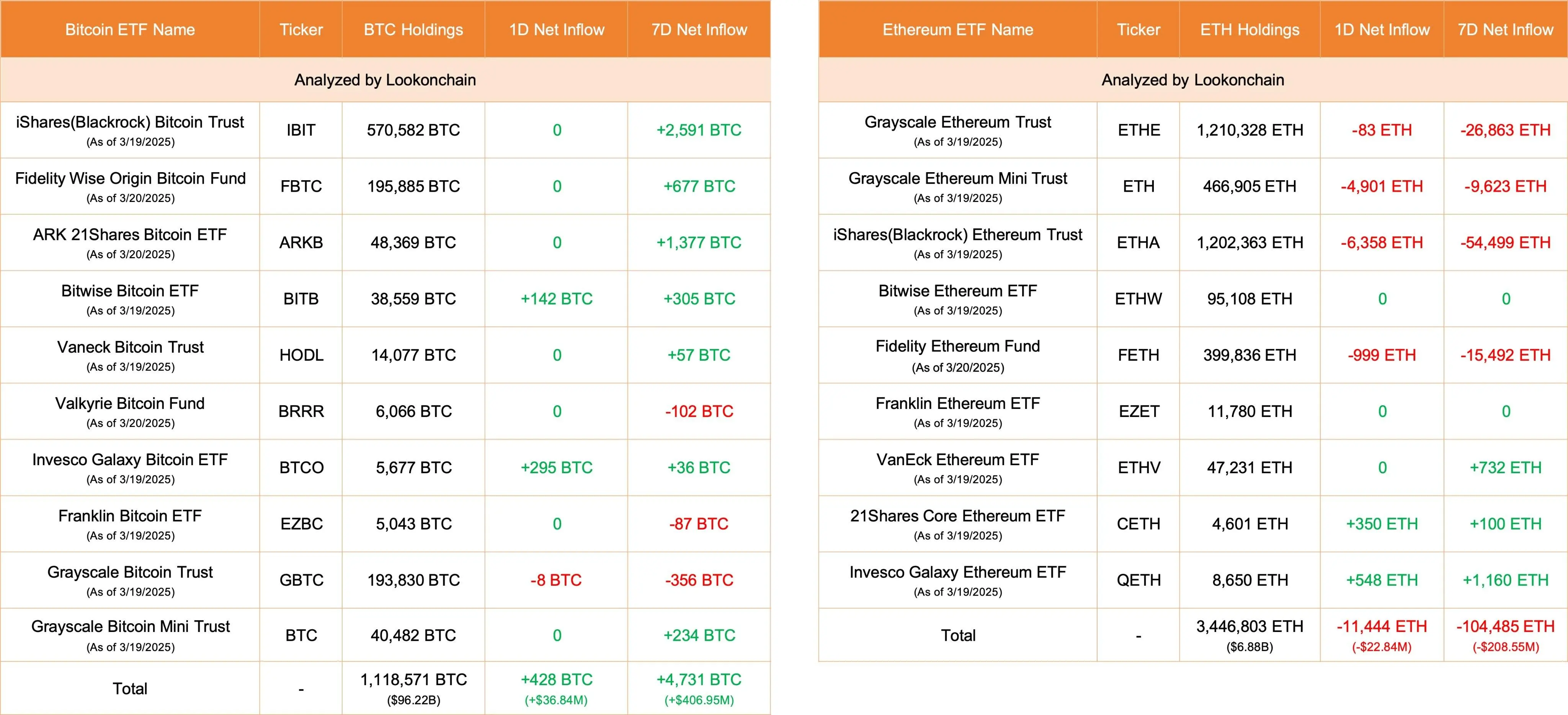 数据:今日美国比特币 ETF 净流入 428 枚 BTC,以太坊 ETF 净流出 11444 枚 ETH