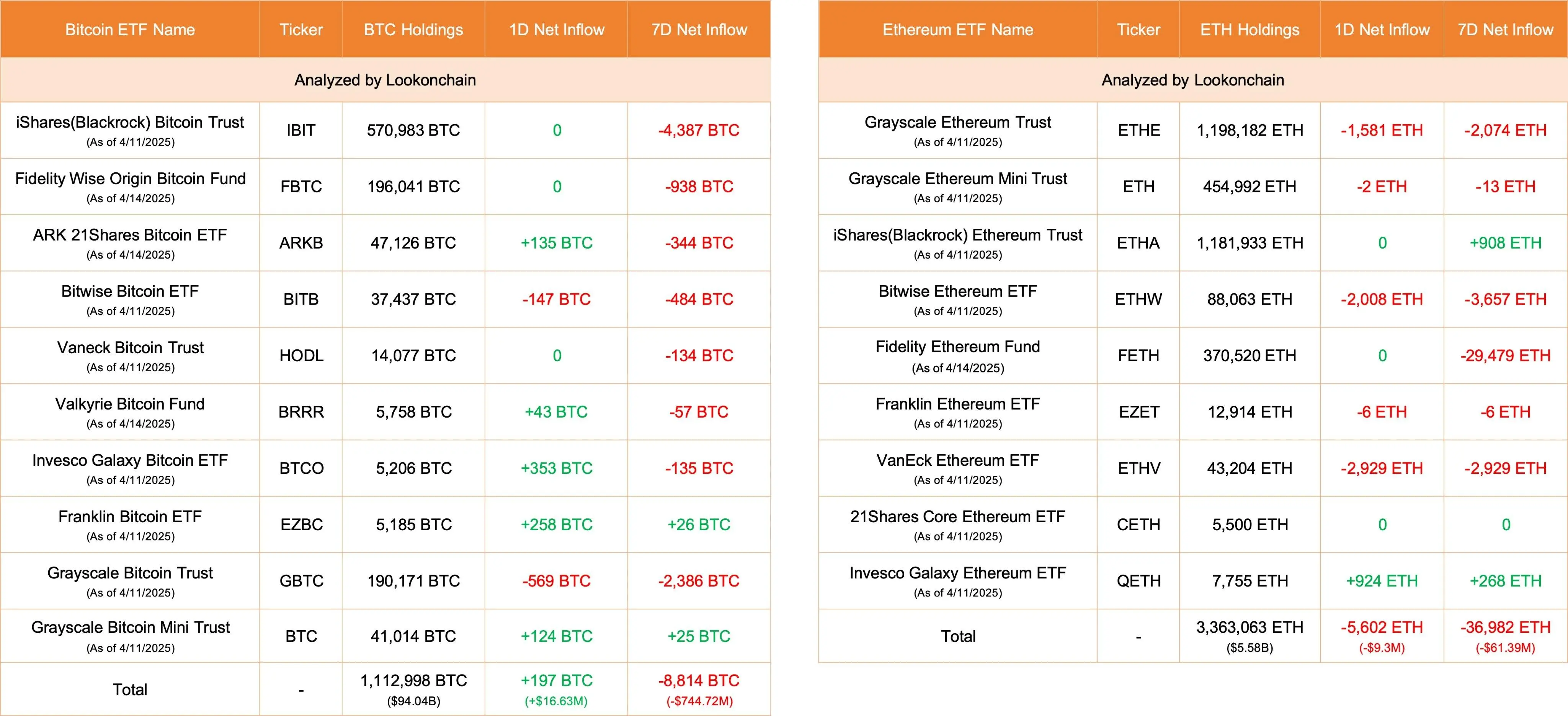 数据:今日美国比特币 ETF 净流入 197 枚 BTC,以太坊 ETF 净流出 5602 枚 ETH