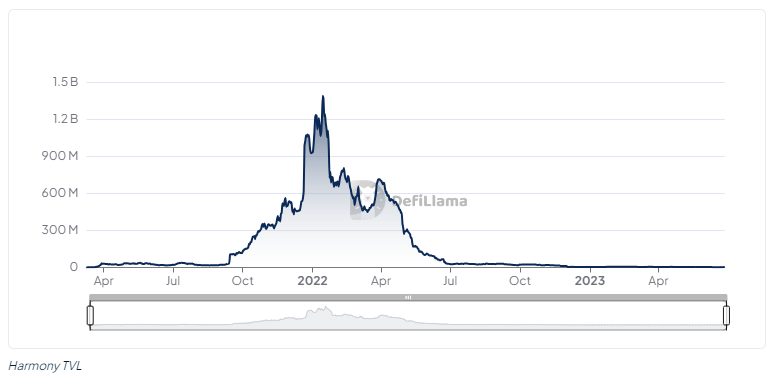 작년, Harmony의 총 잠금 가치는 14억 2천만 달러의 정점에 도달했으며, 이는 해당 블록체인에서 DeFi 프로토콜에 예치된 자산 상황을 측정하는 데 사용됩니다. Harmony의 대표 애플리케이션은 "DeFi Kingdoms"라는 판타지 RPG 게임으로, 암호화폐 애호가들 사이에서 인기를 끌었으며, 해당 체인의 원주율 토큰인 ONE의 거래 가격도 강세를 보였습니다. 모든 것이 잘 돌아가는 것처럼 보였습니다.