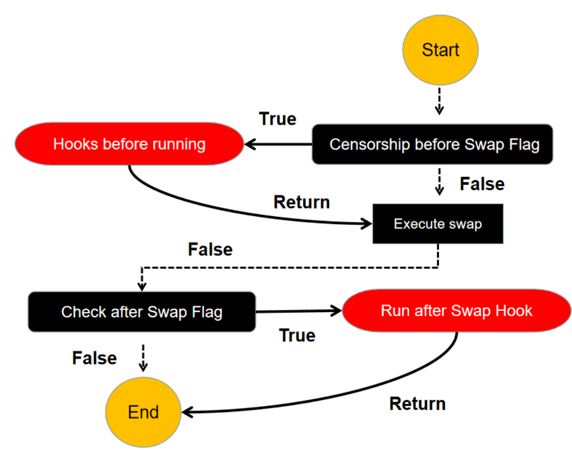 Uniswap V4 버전의 핵심 기능인 Hooks는 모든 개발자가 특정 상황에 맞는 맞춤형 DEX를 만들고 자신의 "레고 블록"을 구성할 수 있게 해줍니다. Hooks는 Uniswap V4에서 도입된 중요한 개념으로, 맞춤형 유동성 풀, 교환, 수수료 및 유동성 제공자(LP) 위치 상호작용을 위한 플러그인입니다. Hooks 메커니즘을 통해 개발자는 유동성 풀의 생애 주기에서 중요한 순간에 특정 작업을 실행할 수 있습니다. 예를 들어, 교환 전/후 또는 LP 위치가 변경되기 전/후에 특정 작업을 수행할 수 있습니다.