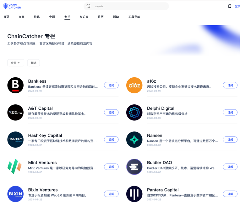 过去,ChainCatcher 坚持深度调研、采访了 OKX、Folius Ventures、Animoca Brands、Binance Labs 等数千个行业头部的项目与机构。此外,ChainCatcher 邀请了众多颇具行业声誉的专家入驻平台,共同为行业输出高质量的内容与洞见。